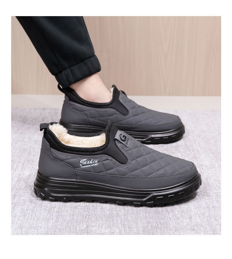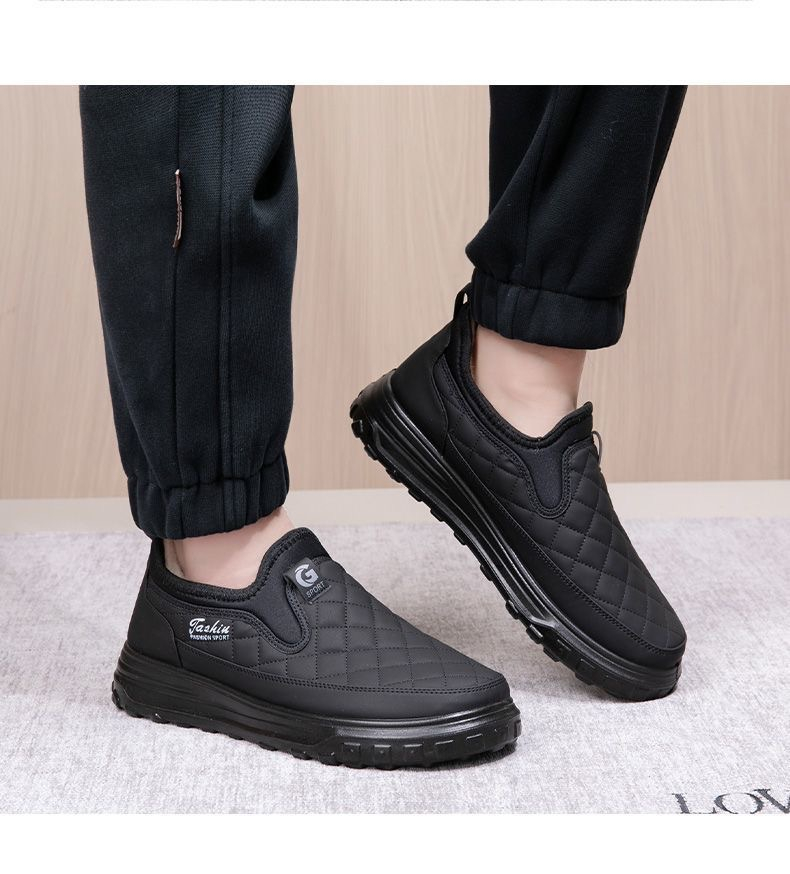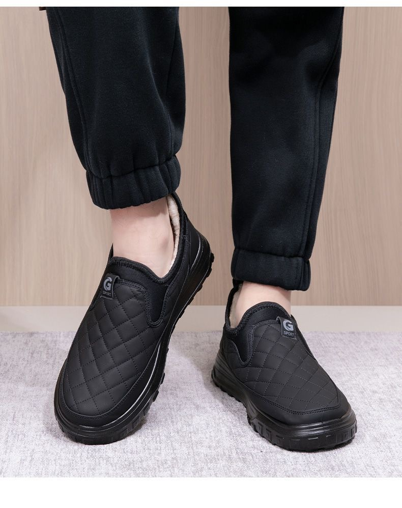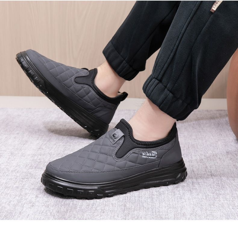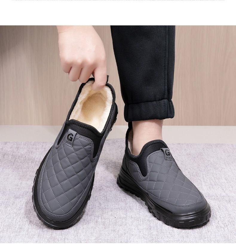 Product information: Pattern: solid color Color: black, gray Heel shape: flat heel Size: 39, 40, 41, 42, 43, 44 Sole material: Plastic Popular elements: Hollow, sewing thread Style: cotton shoes Thickness: thickening Toe holder shape: round head Shoe Upper material: artificial pu Wearing style: slip-on Applicable group type: parent and child Applicable Gender: Male Leather features: PU Applicable age: Adult Function: breathable Suitable season: Winter